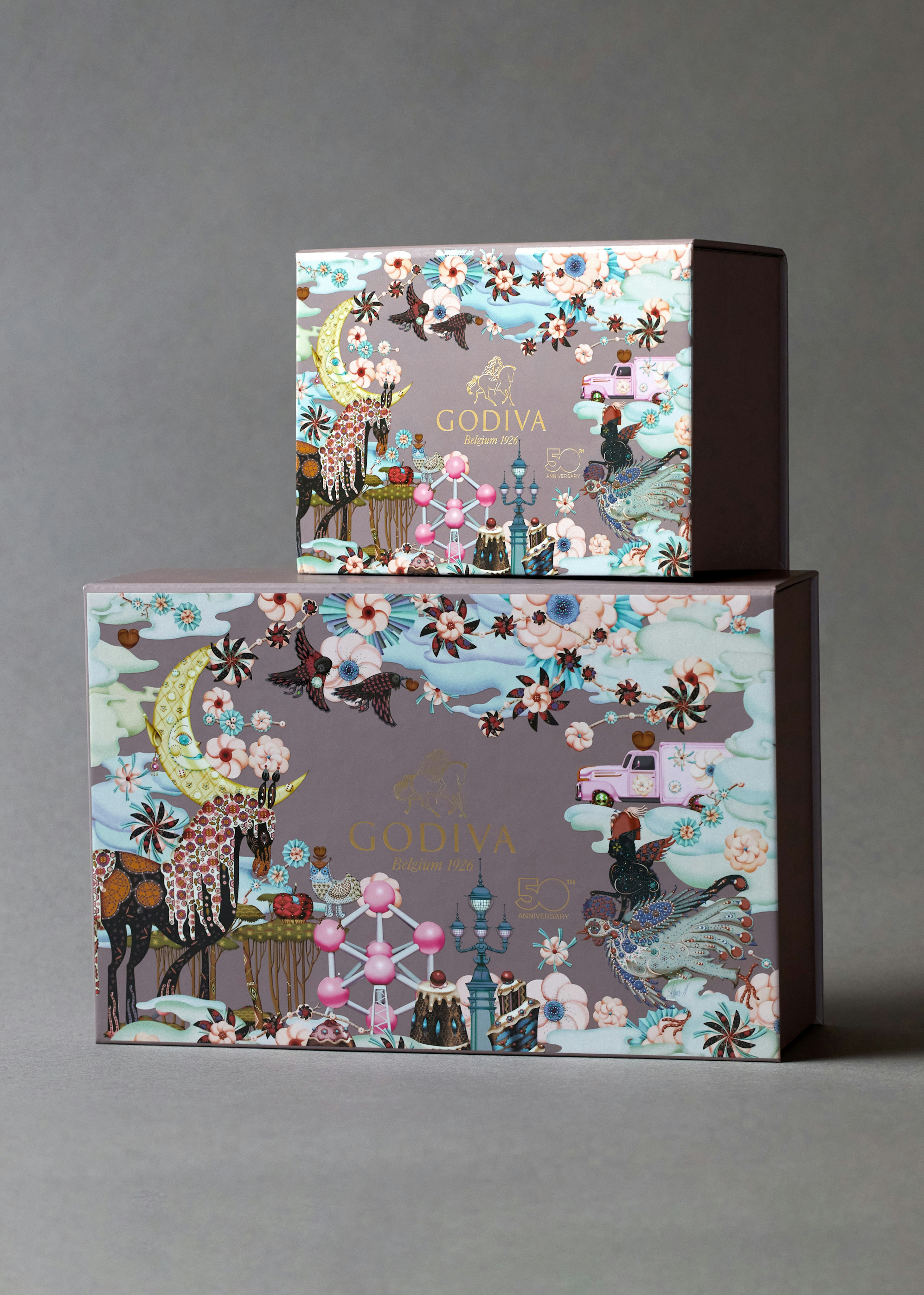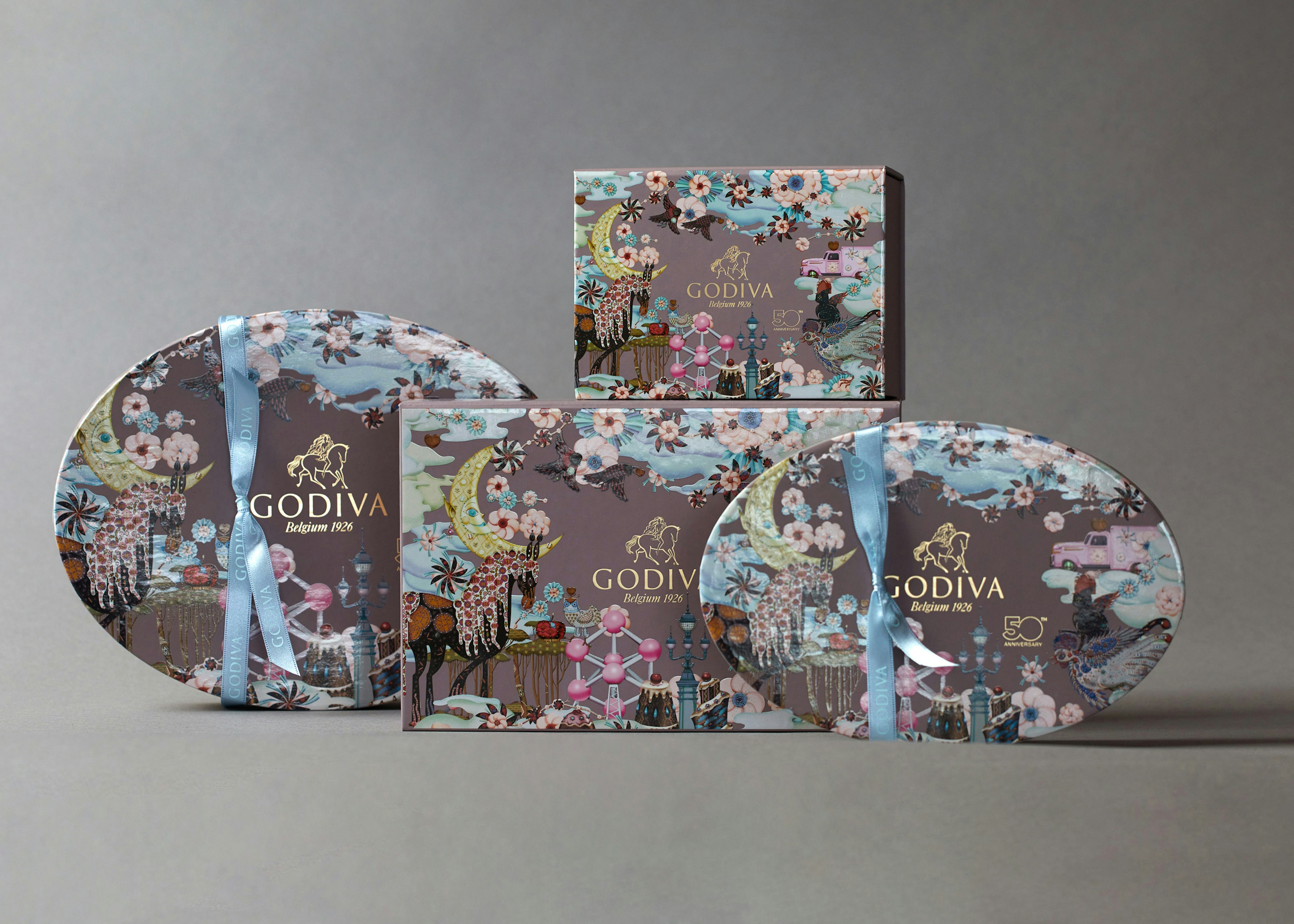 We collaborated with Godiva, Japan on their 50th anniversary, creating a special gift box for Valentine's Day this year.