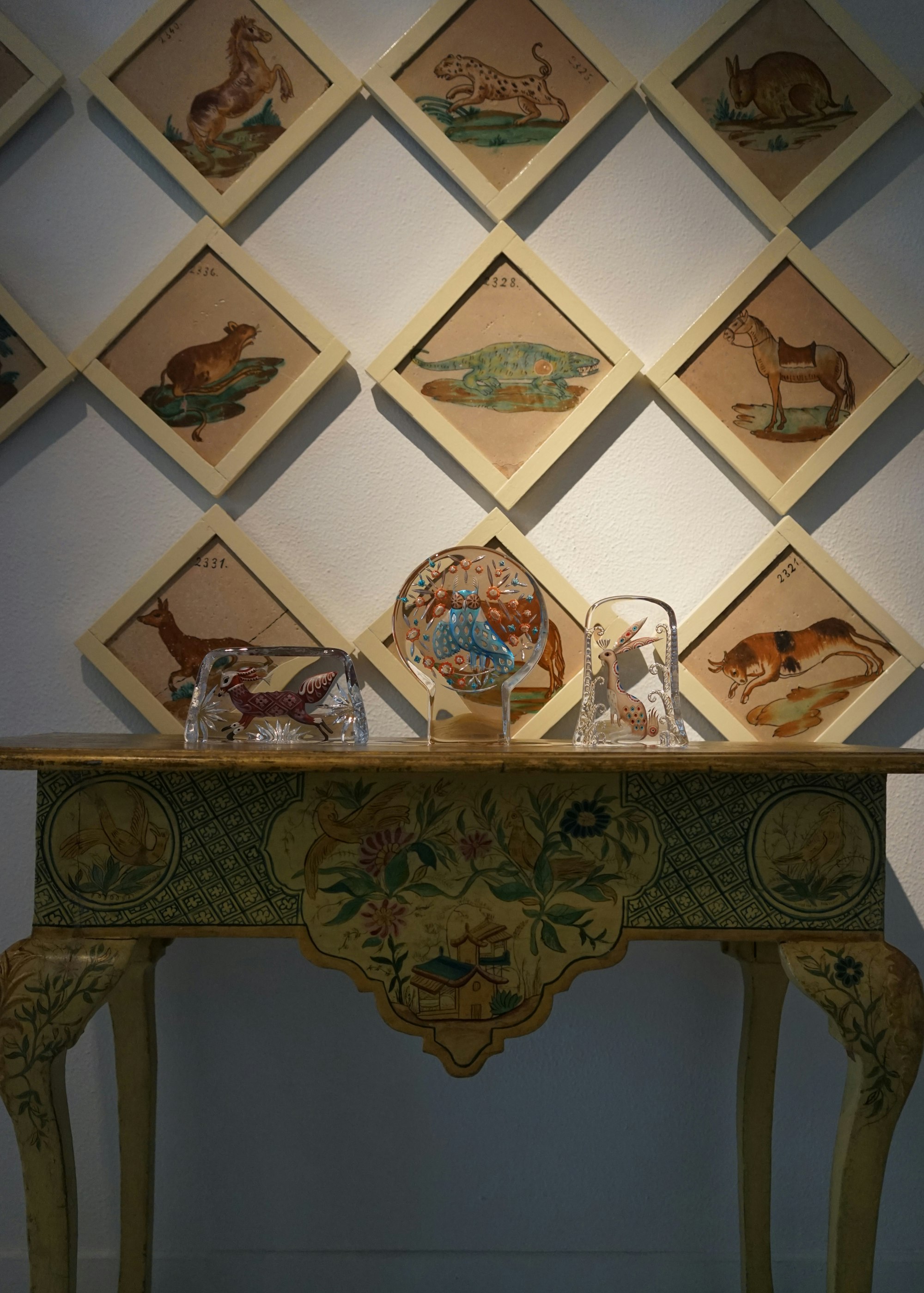 Tales from Wilderness is a collection of handpainted crystal ornaments manufactured by Målerås Glasbruk in Sweden.