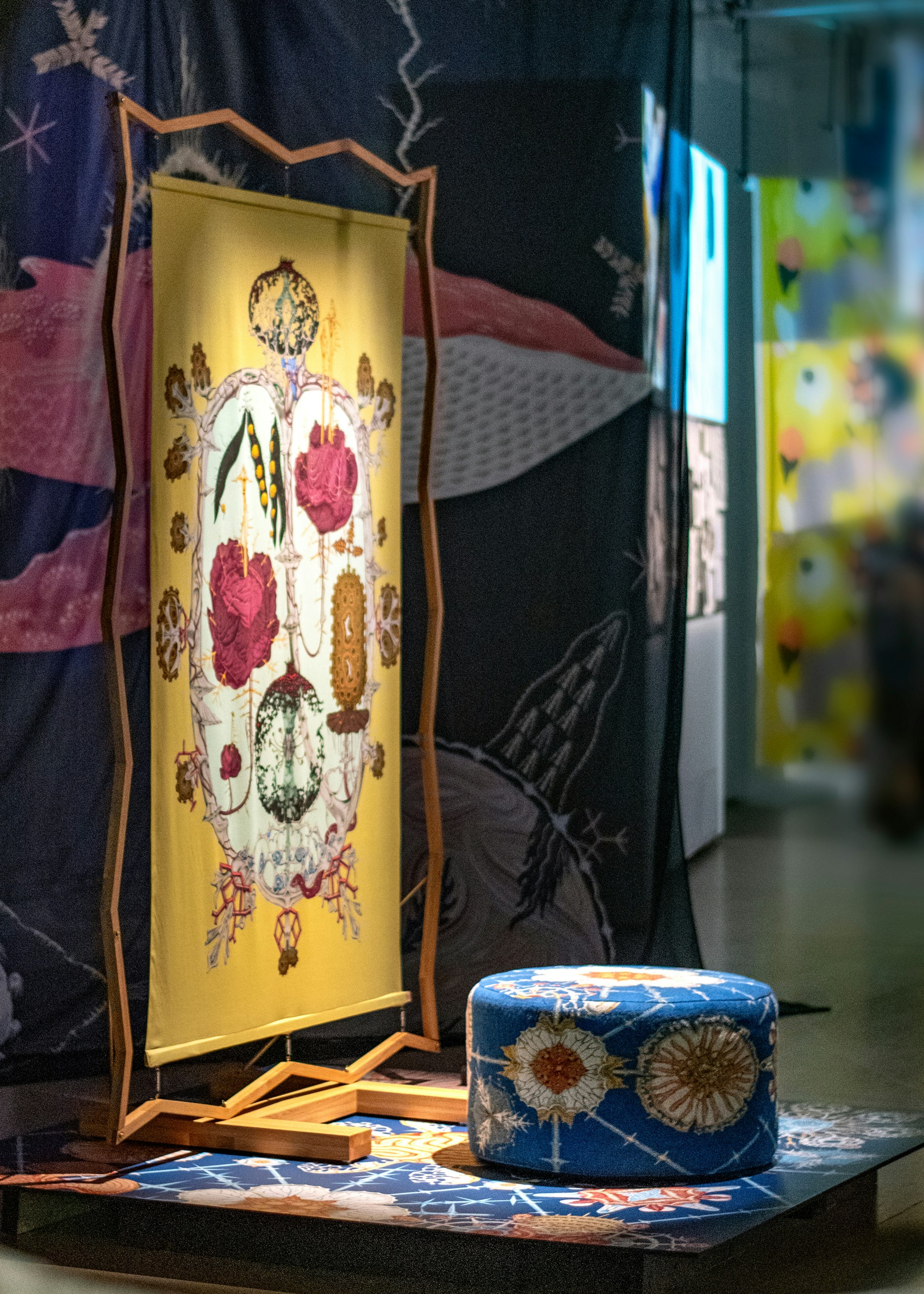 The exhibition takes us on a journey through the multidisciplinary patterns of today, where distinctions between interior design and fashion, ugliness and beauty, digital and analogue, and abstract and concrete are becoming increasingly blurred. This is an age that in one moment takes inspiration from nature and the next works with abstraction, moving between the future and the past, the playfully humorous and the graphically strict.