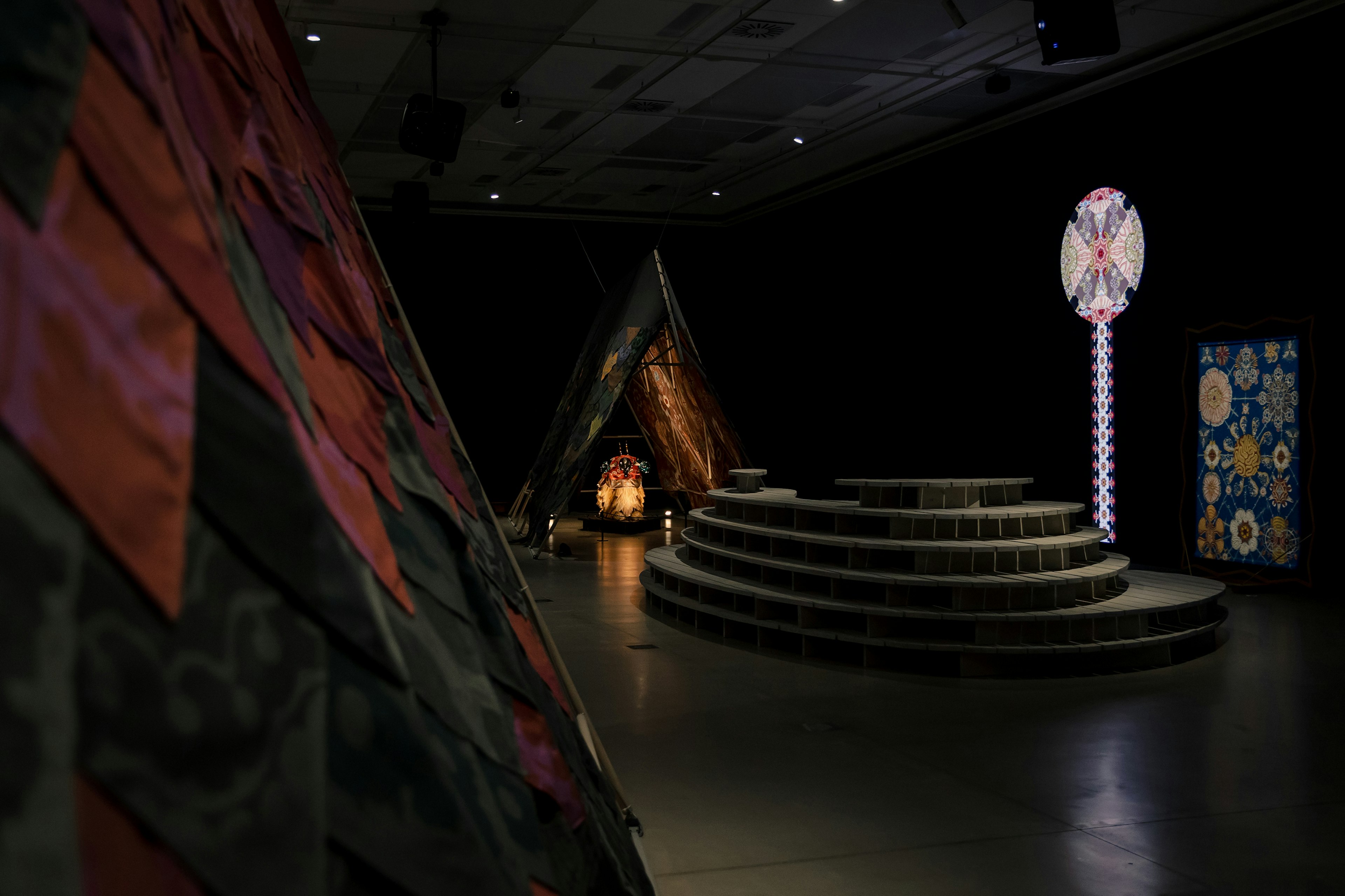 It invites to linger and become sensitized, even spiritualized. Designer Klaus Haapaniemi, known for his imaginative creations, has conjured up the mythological Voyagers gesamtkunstwerk, a complete work of art, for the Lahti Museum of Visual Arts Malva in Finland. It is a nomadic camp set up in the exhibition space: four architectural tents host mixed media sculptures and are surrounded by soundscapes, animated light totems and occasional performances by dancers. Visitors to the Voyagers camp are allowed to immerse themselves in the depth of their subconscious, get to know imaginary cultures and dive into their visual whirlwinds.